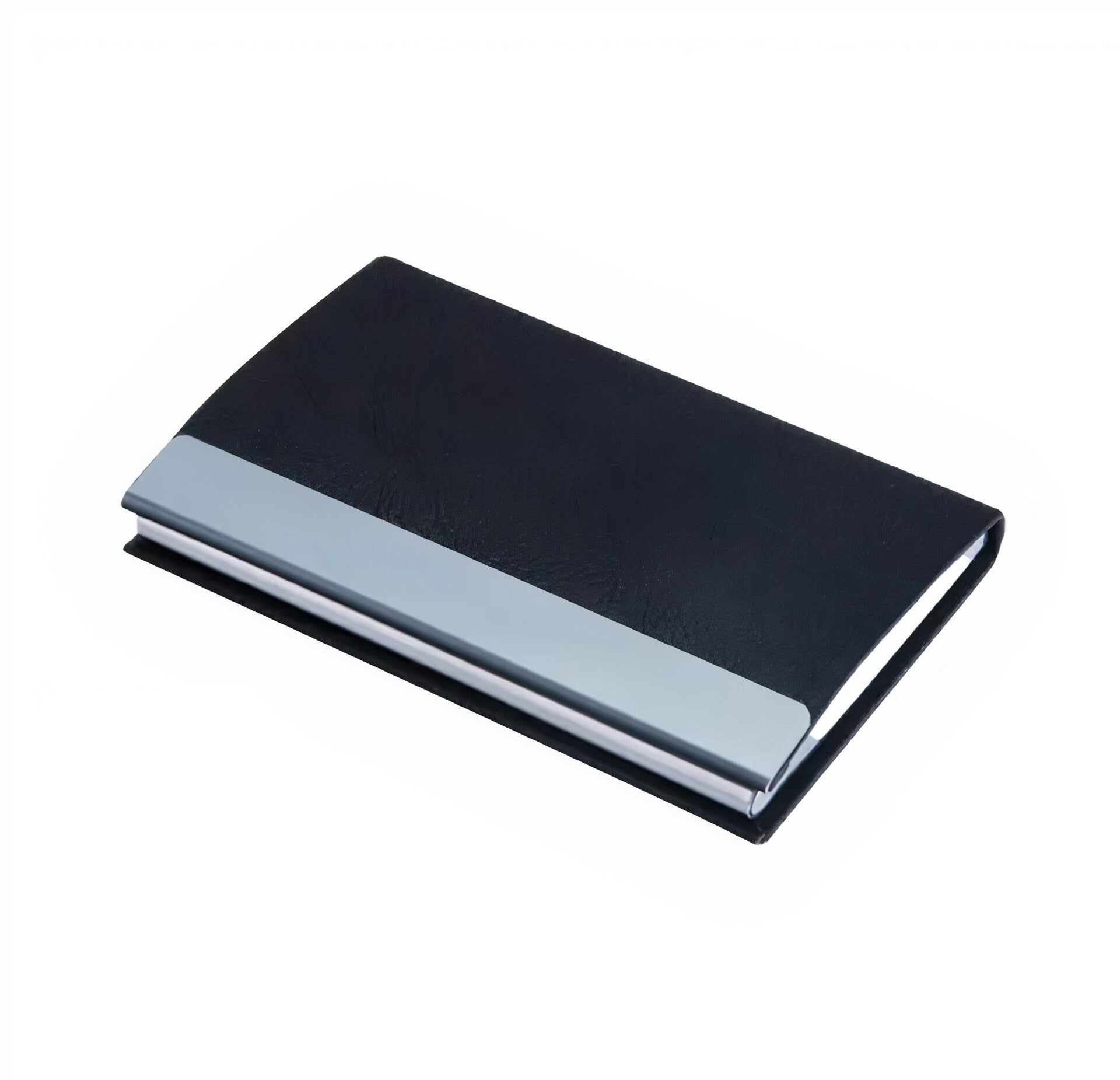 Leather Business Card Holder with Metal Body. A stylish and compact card holder made from durable metal combined with high-quality faux leather. It securely protects business cards and plastic cards from damage while maintaining a professional appearance. The magnetic closure provides easy opening and closing, and the elegant design highlights the user’s professional style. An ideal corporate gift and a great option for logo branding.